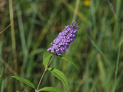 Der Sommerflieder ist eine beliebte Zierpflanze, die in zahlreichen Sorten angeboten wird. Tatsächlich lockt der Strauch viele Schmetterlinge, Bienen und andere Insekten an. Er wird jedoch überwiegend von häufigen und wenig spezialisierten Arten als Nektarpflanze genutzt. Für Schmetterlingsraupen ist er als Nahrungspflanze uninteressant.